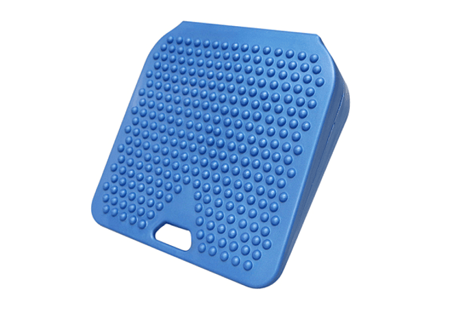 La cuña inflable requiere la participación activa del usuario para asumir la postura correcta para sentarse. Cuña combina asiento dinámico y posicionamiento estático. Inflar o desinflar la cuña para variar el grado de dificultad. Disponible en 2 tamaños: Adulto: 15 x 15" (38 cm) y Pediátrico: 10 x 10" (25 cm)