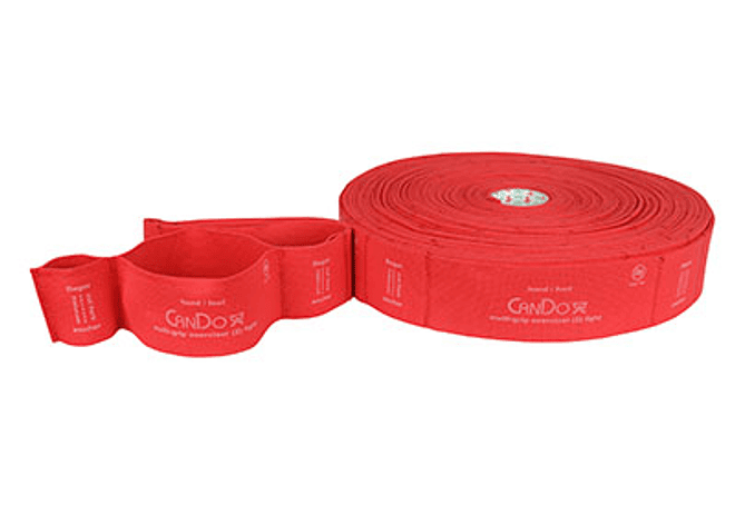 El CanDo® Multi-Grip™ Exerciser está diseñado para proporcionar opciones de ejercicio ilimitadas a los usuarios que desean realizar varios ejercicios de alto impacto. Cada ejercitador contiene bucles grandes y pequeños que son fáciles de agarrar. Use los bucles pequeños como ancla o para ejercicios con los dedos. Use los bucles más grandes alrededor de las manos y los pies para realizar ejercicios de alto impacto en la parte superior e inferior del cuerpo. Cambie fácilmente la resistencia moviendo 1 bucle hacia arriba o hacia abajo del ejercitador, o usando una resistencia diferente, haga ejercicio progresivamente con 8 niveles de resistencia codificados por colores diferentes. El Ejercitador está hecho de un paño sin perfume que se puede lavar y secar. No contiene látex ni una capa de polvo. Este rollo de treinta yardas contiene 15 Ejercitadores y tiene 135 bucles grandes en total.